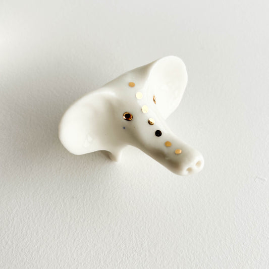 Porcelain Elephant Grey GOLD SPOTTY EAR