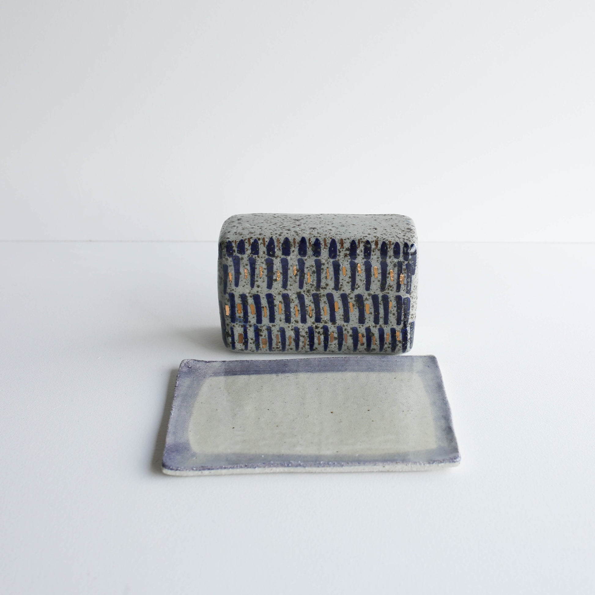 | Clear Glaze w/ Gold flower | 2-Piece Butter Box | Hand Formed by Bridget Bodenham.