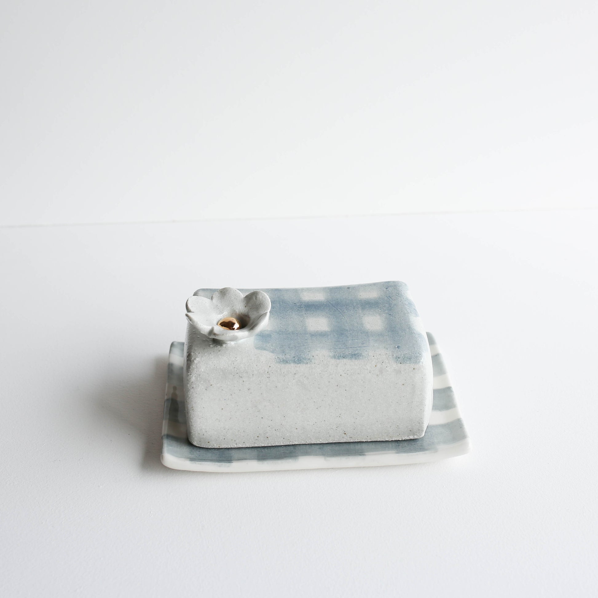 | Clear Glaze w/ Gold flower | 2-Piece Butter Box | Hand Formed by Bridget Bodenham.
