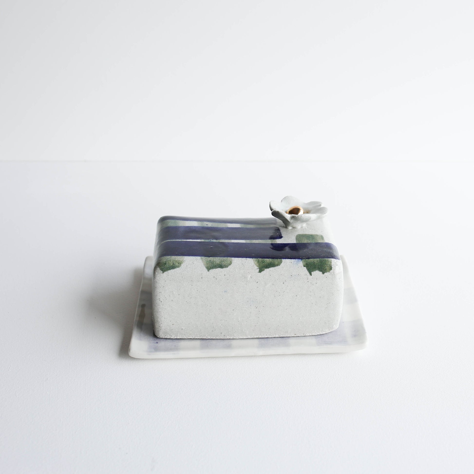 | Clear Glaze w/ Gold flower | 2-Piece Butter Box | Hand Formed by Bridget Bodenham.